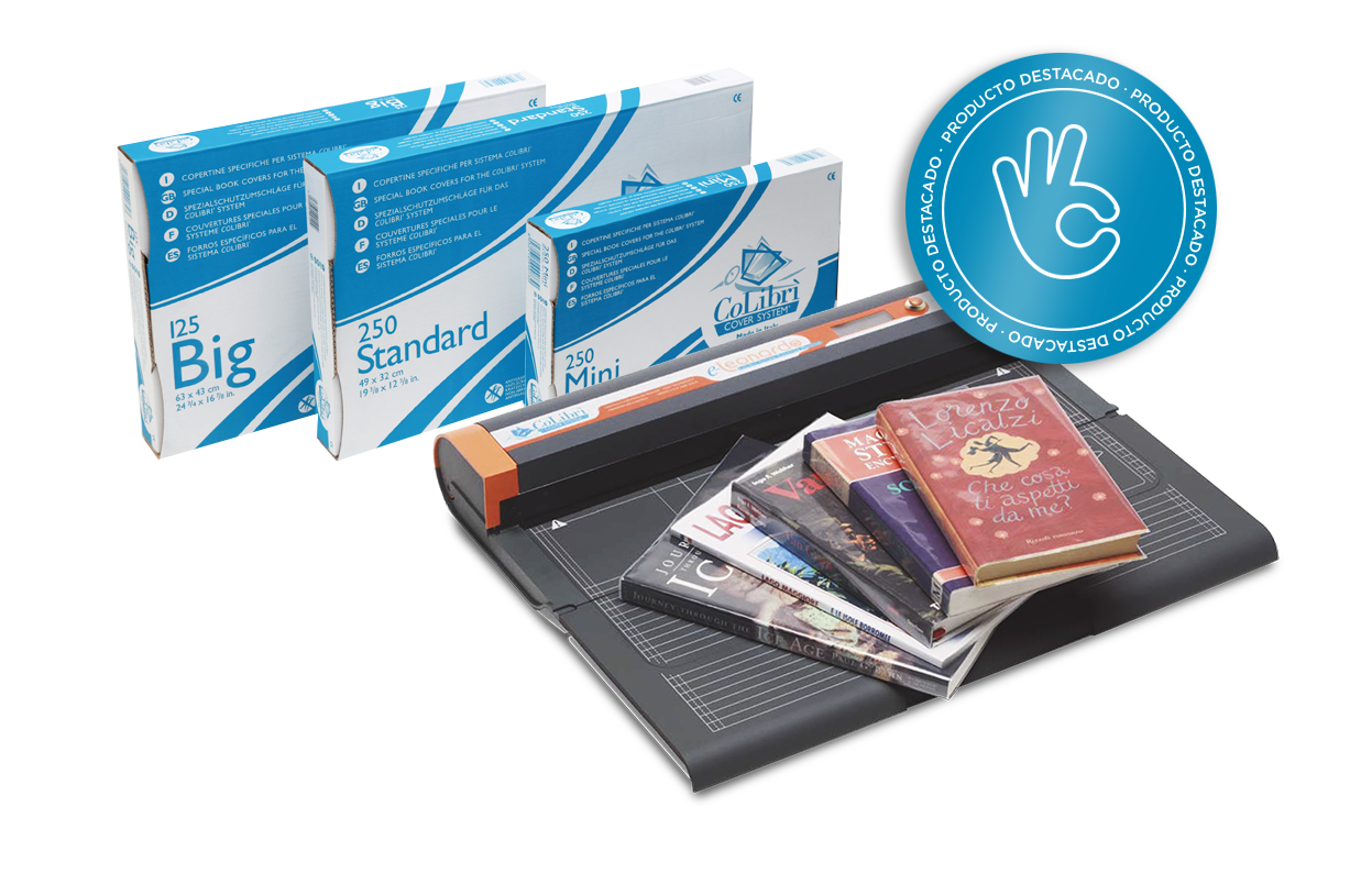 The cover system does not mark or damage the book cover, it does not use glues or adhesives, being very easy to replace without damaging the book.